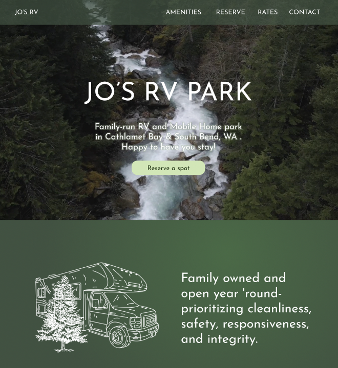 RV Business Website that hosts in-site bookings, has clean and friendly brand identity, and easy to navigate UX.