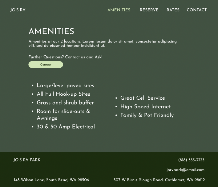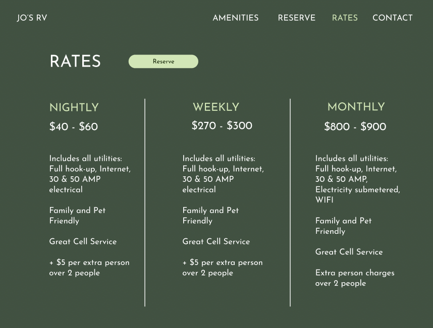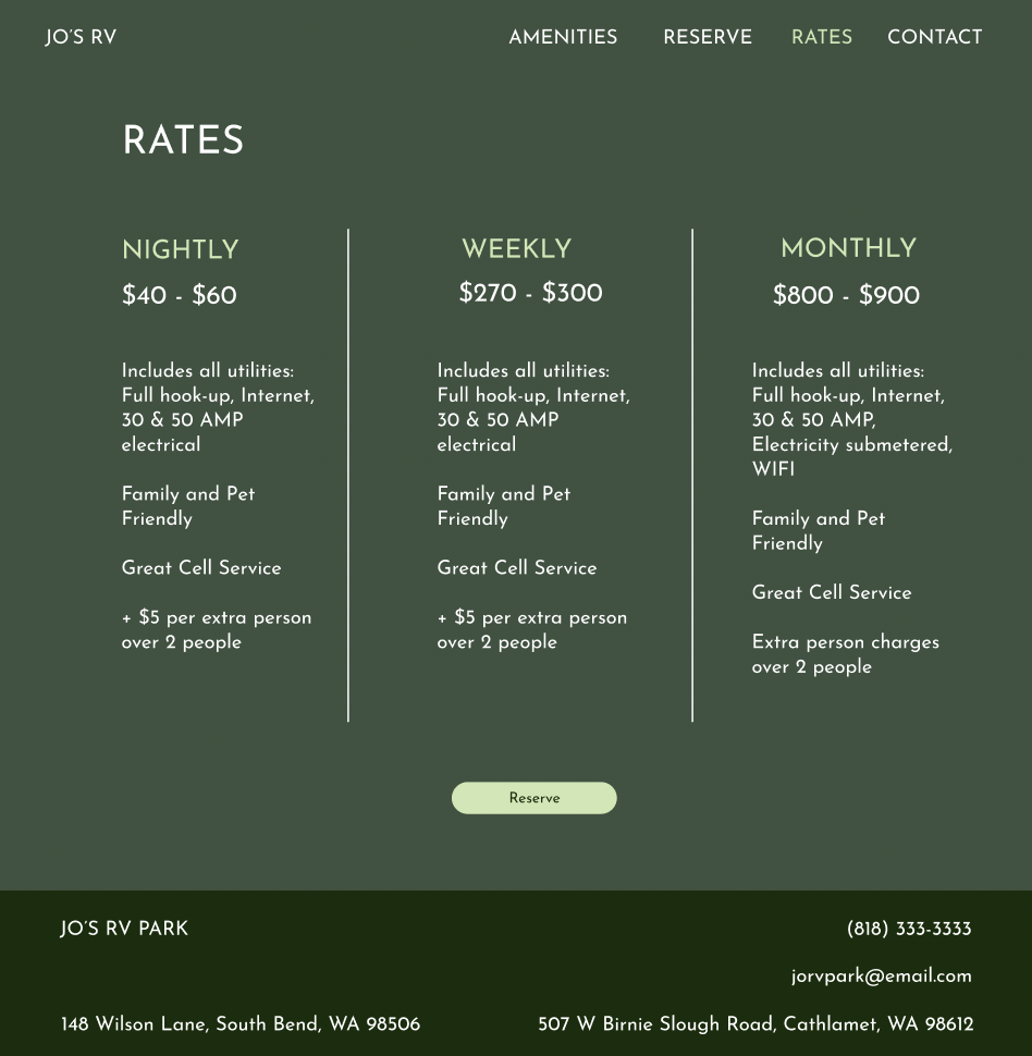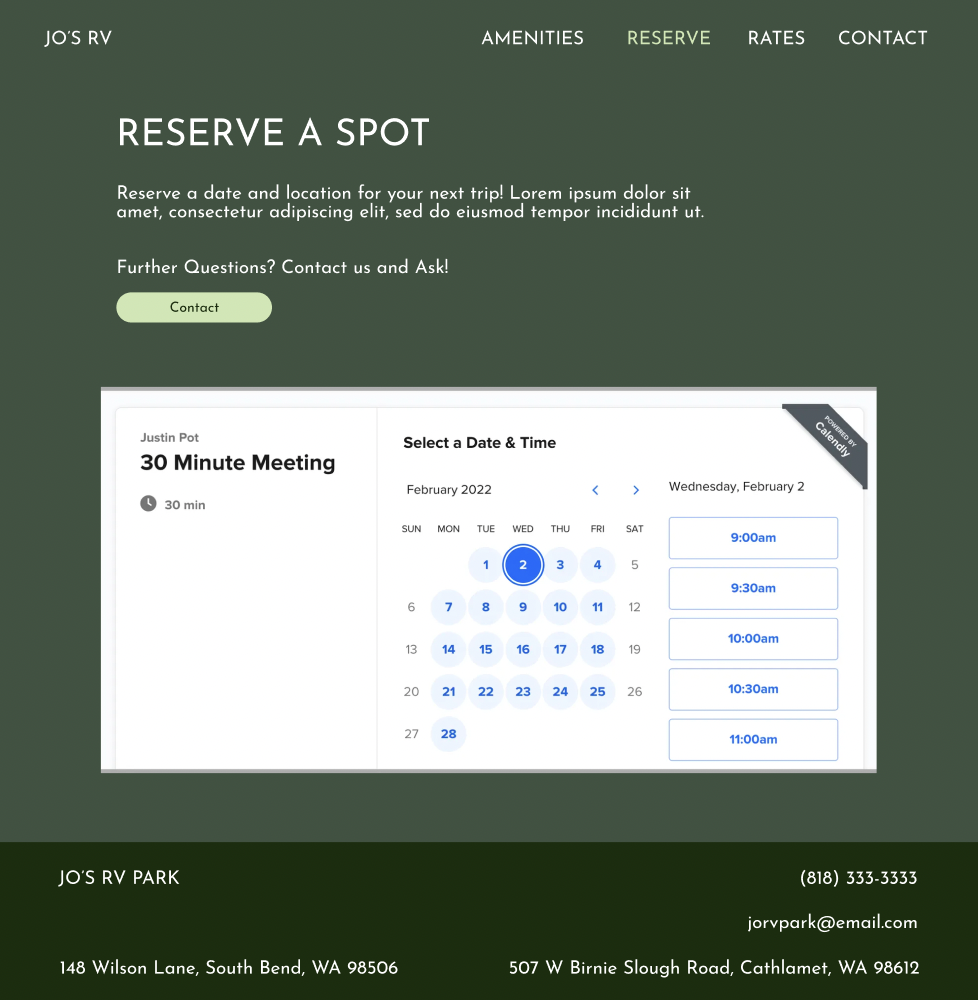 Similarly, time constraints left the calender portion of the reserve page to be incomplete. These two elements are projected to be developed in the future, as this website will be used for my dad's small business.