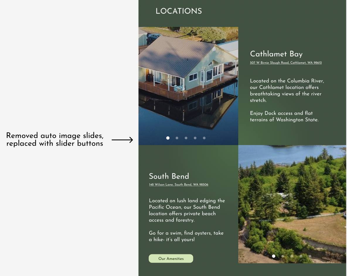 • Auto scroll to take people to locations on home page, if its not a separate tab