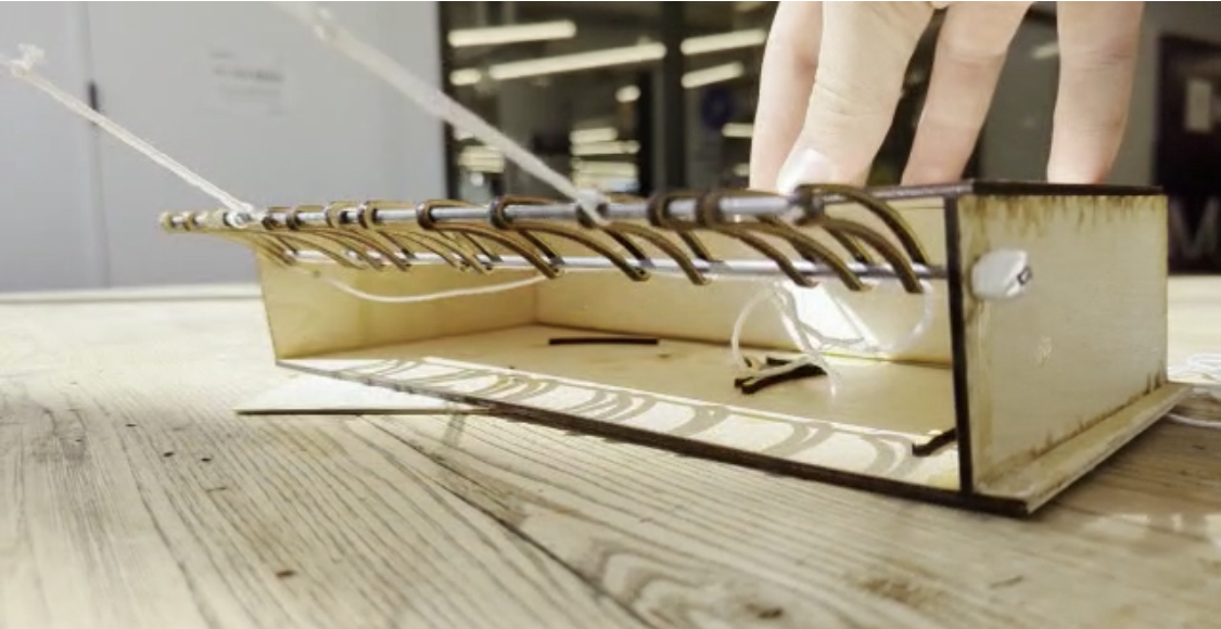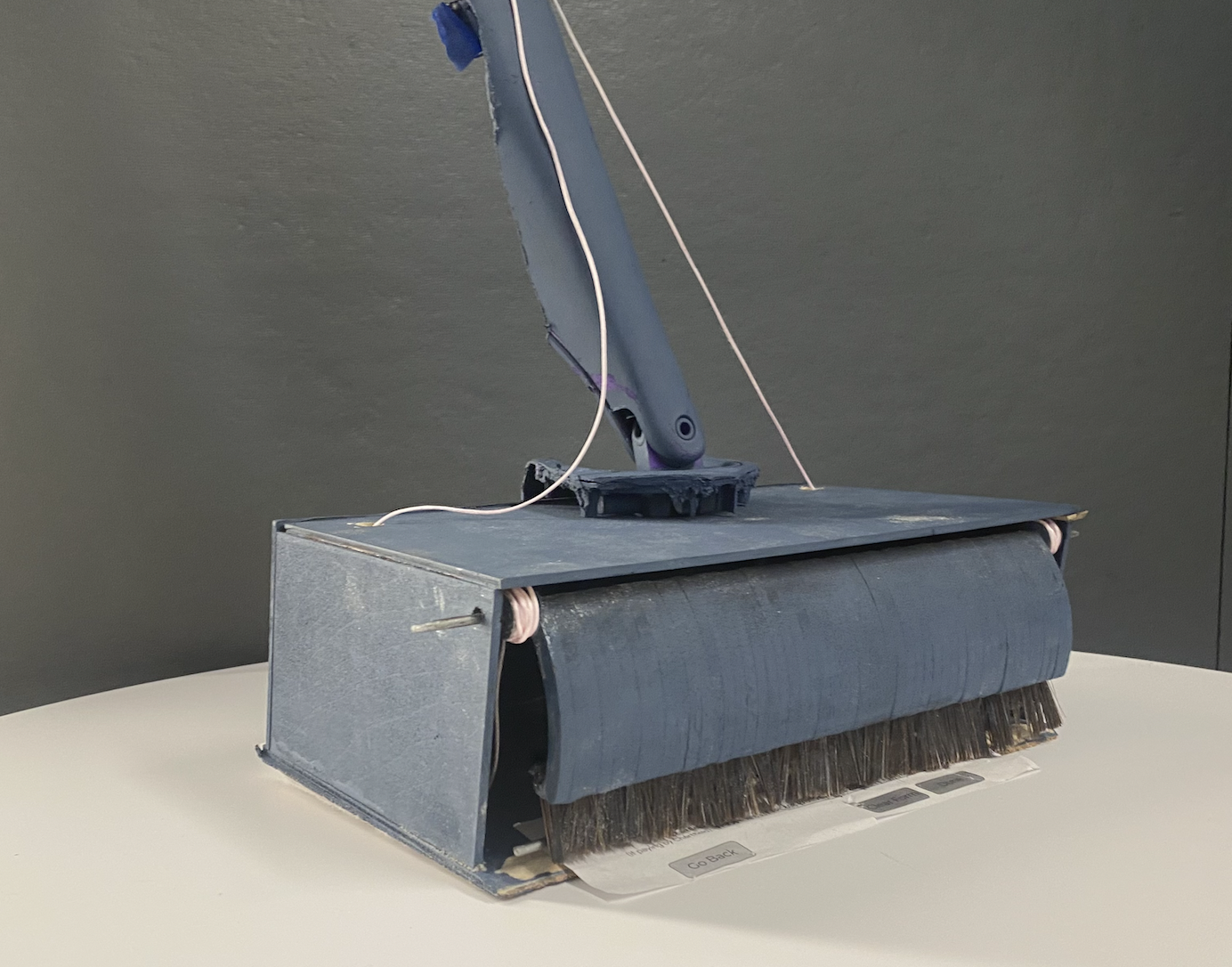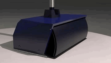 A non-electric mechanical tool with a moist disposable cloth on the bottom to wipe down your floors, but also with an overhead claw that scrapes in any larger debris.